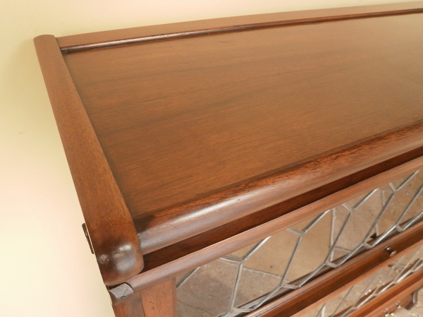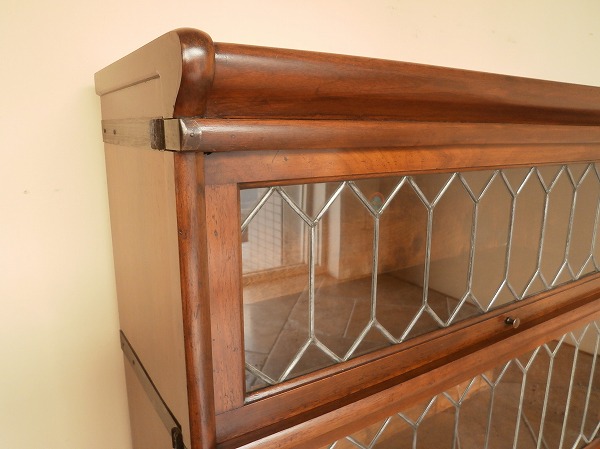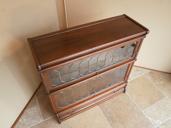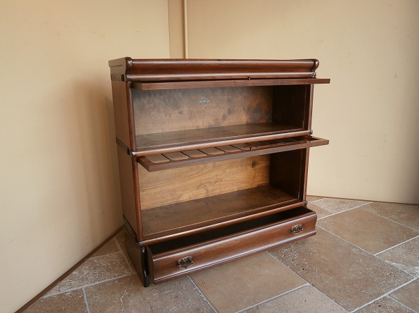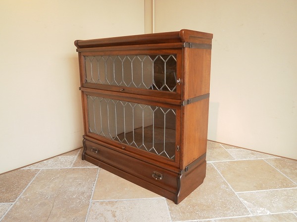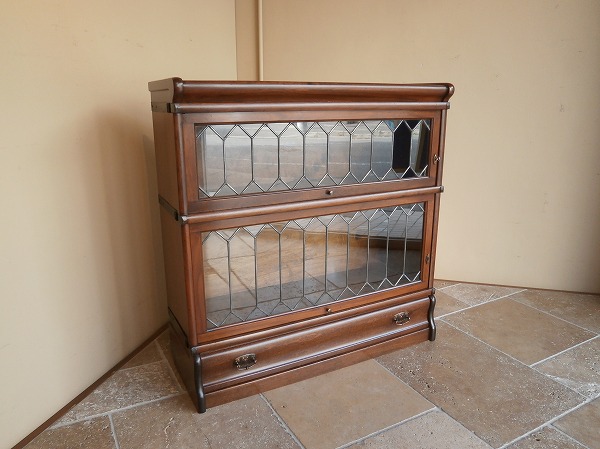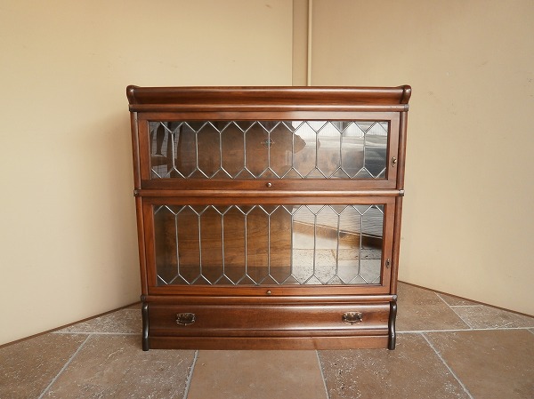 厳選された上質のマホガニー材が贅沢に使用された、Globe-Wernicke社 スタッキングブックケース 扉にはクラシカルなリーディッドグラス、下部には抽斗が設けられています。幅・奥行は一般的なサイズですが、日本の住宅事情に馴染みやすい、H 高さの低いものは極めて珍しいサイズとなります。