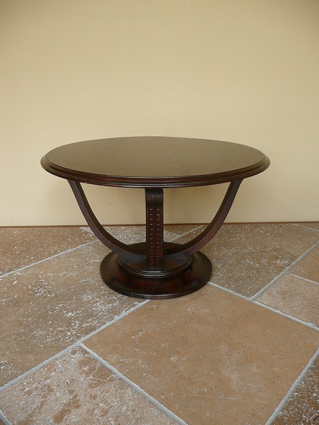 現代家具とは一線を画す、斬新且つ典型的なアールデコの流れを汲むスタイリング 朔月を重ねて深みを増したオーク材の質感がアンティーク特有の計り知れない魅力を物語っています。