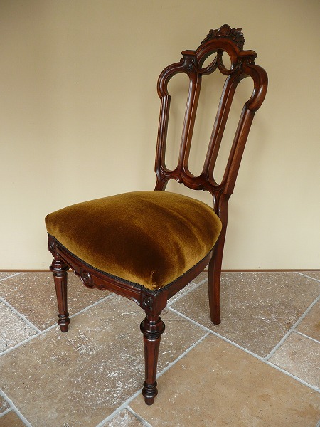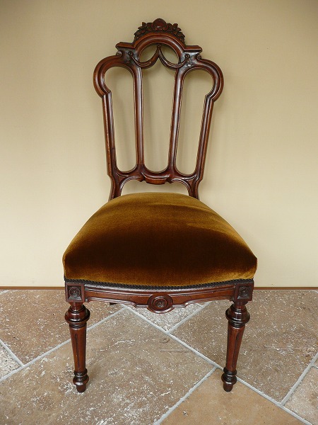 厳選された上質のウォルナット材をベースに、フランスアンティークらしい重厚感に加え脚部にまで意の施われた、各所のハイレリーフをはじめとする装飾技術が最高の輝きを放ちます