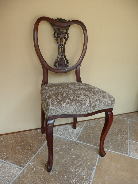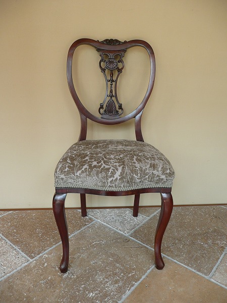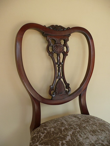 厳選された上質のマホガニー材の特性が最大限に活かされた、スプラットに見られる手の込んだクラシカルなピアスドカーヴィング(透かし彫り)がアンティーク特有の計り知れない魅力を色濃く映し出しています。