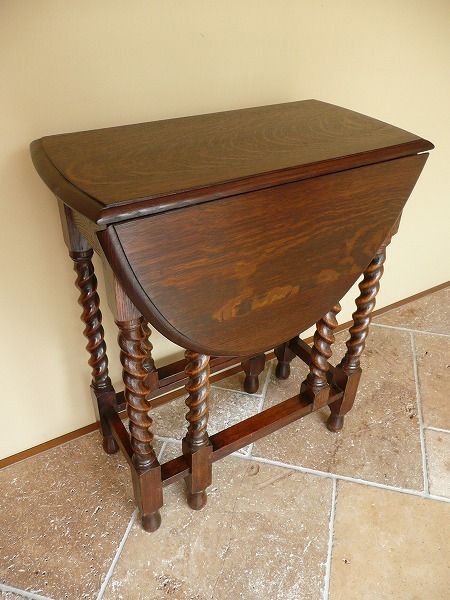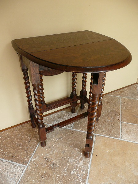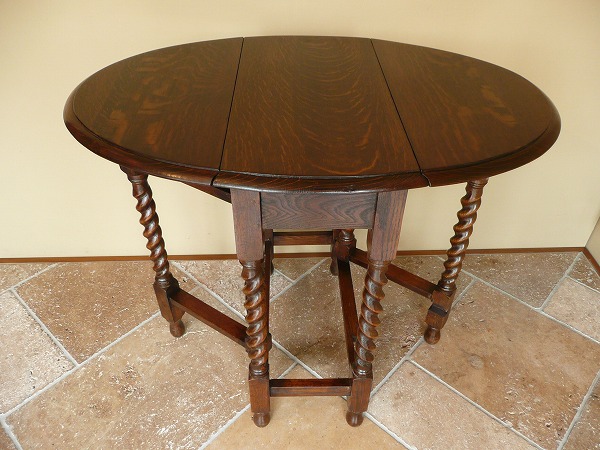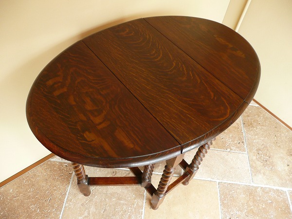 扉が開閉するところから名付けられた、すっかりお馴染みのゲートレッグテーブル ソリッドオークをベースに丹念に配されたバリーシュガーツイストの彫刻装飾が冴え渡ります。