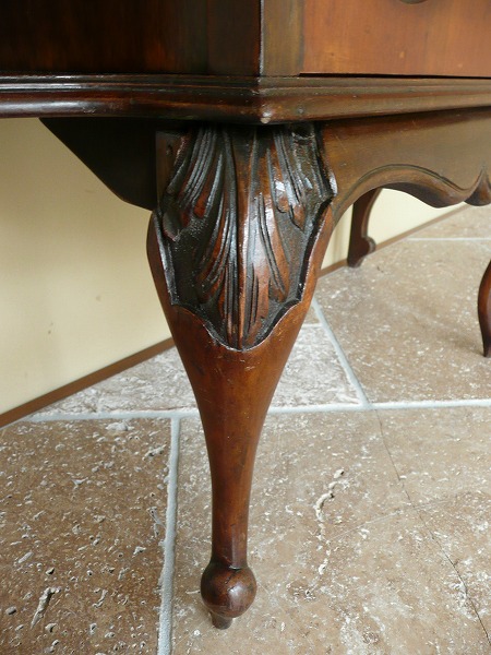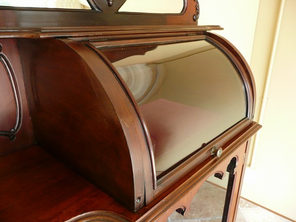 朧月を経て磨きのかかった、本当のアンティークと呼ぶに相応しいヴィクトリアン期を代表する高貴な佇まい 上質のマホガニー材をベースに、各所に施された装飾技術が輝きを放ちます。