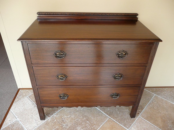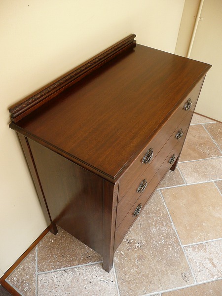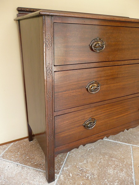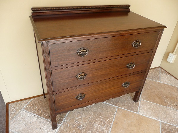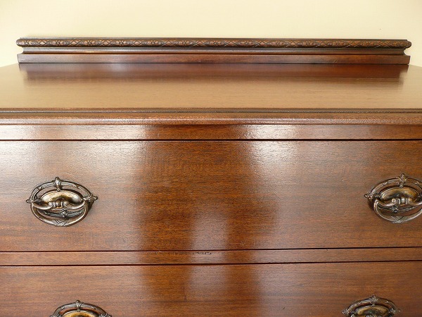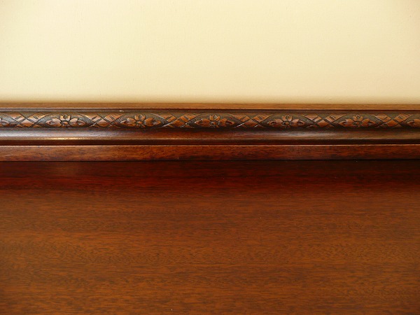 気品漂う艶やかなマホガニー材の質感が全面に色濃く映し出され、クラシカルなドロップハンドル、カーヴィングは年月を経て生み出されたアンティークの奥深い魅力を物語っています。