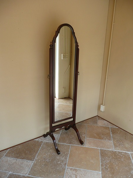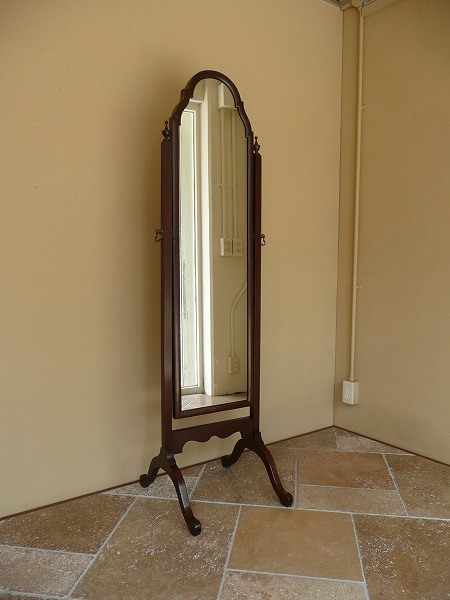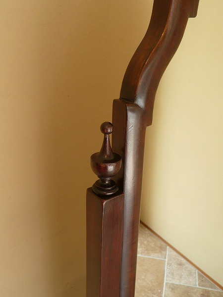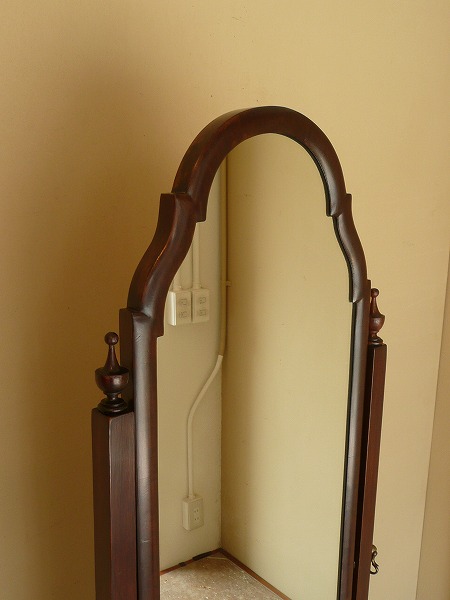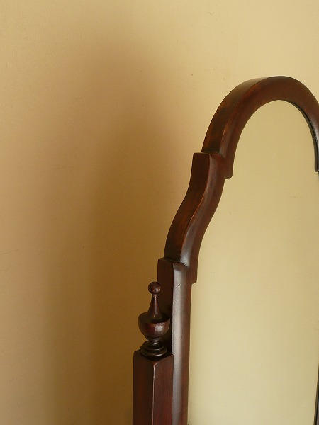 ミラーフレーム上部の曲線が優しい印象を与えてくれる、スタイリングの美しさが際立つシュバルミラー 満月を重ねて更に深みを増した、マホガニー材の高質感がストレートに伝わってきます。※オリジナルと同形状にてミラー新調済