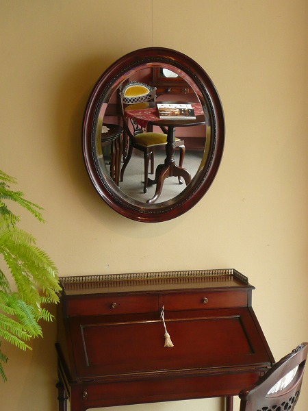 朽月を重ねて更に深みを増した、アンティーク特有の風合いが色濃く映し出されています。高級感漂うローズウッドの美しい木目をはじめ、フレーム内側を彩る繊細な彫刻が最高の輝きを放ちます。※オリジナルと同形状にてミラー新調済み