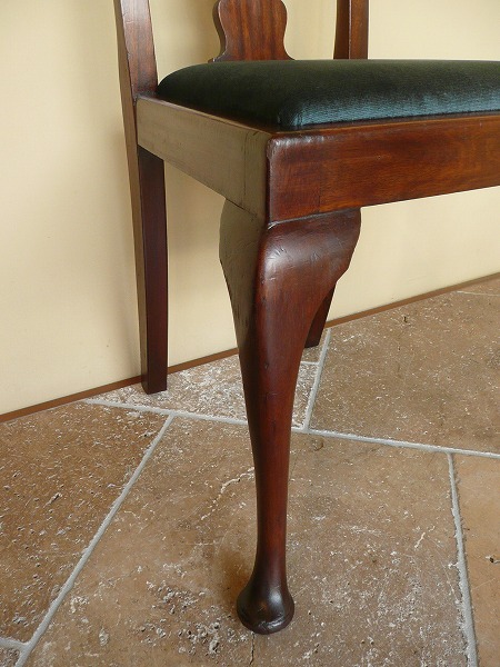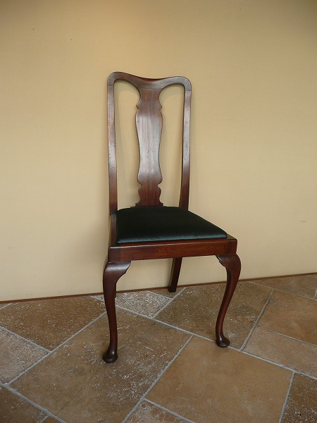 英国アンティークではすっかりお馴染みの、オーソドックスなクィーンアンチェアー 背をモチーフにしたスプラットのアーンシェイプ、微妙な曲線を描く優美な印象を持つカブリオールレッグがバランスよく組み合わされたスタイリングの美しさが際立ちます。 |