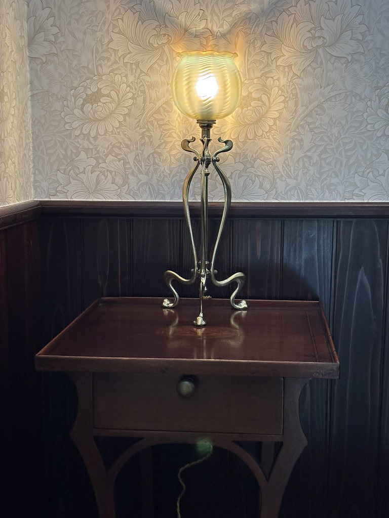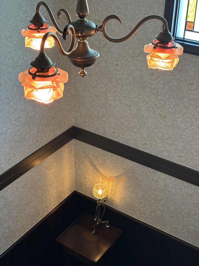 自然光の射しこむ開放的な2階の空間には、レイトヴィクトリアン期に生み出された、ワットノットを配置されていたそうです。気品漂う腰窓と床材の装飾との相性もよく、落ち着いた優雅気を醸し出しています。