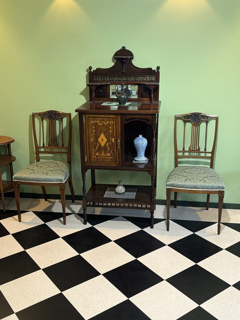 象嵌・透かし彫り・彫刻装飾など奥深いアンティークの魅力が凝縮されています。